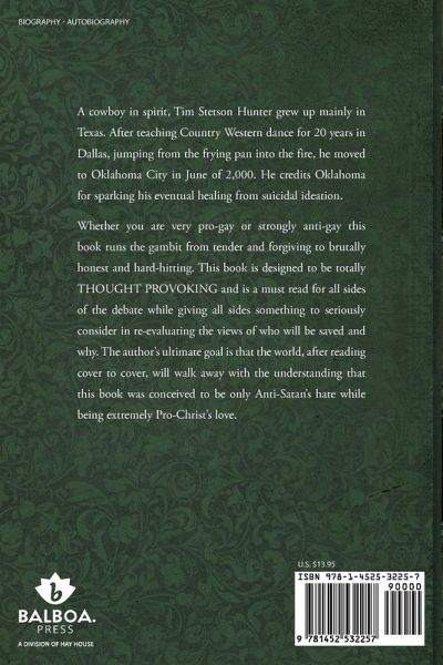 Whether you are very pro-gay or strongly anti-gay this book runs the gambit from tender and forgiving to brutally honest and hard-hitting. This book is designed to be totally THOUGHT PROVOKING and is a must read for all sides of the debate while giving all sides something to seriously consider in re-evaluating the views of who will be saved and why. The author's ultimate goal is that the world, after reading cover to cover, will walk away with the understanding that this book was "born" to be only Anti-Satan's hate while being extremely Pro-Christ's love.