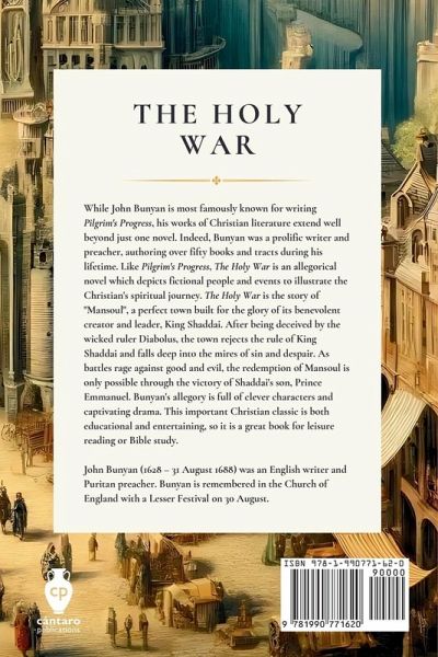 While John Bunyan is most famously known for writing Pilgrim's Progress, his works of Christian literature extend well beyond just one novel. Indeed, Bunyan was a prolific writer and preacher, authoring over fifty books and tracts during his lifetime. Like Pilgrim's Progress, The Holy War is an allegorical novel which depicts fictional people and events to illustrate the Christian's spiritual journey. The Holy War is the story of "Mansoul", a perfect town built for the glory of its benevolent creator and leader, King Shaddai. After being deceived by the wicked ruler Diabolus, the town rejects the rule of King Shaddai and falls deep into the mires of sin and despair. As battles rage against good and evil, the redemption of Mansoul is only possible through the victory of Shaddai's son, Prince Emmanuel. Bunyan's allegory is full of clever characters and captivating drama. This important Christian classic is both educational and entertaining, so it is a great book for leisure reading or Bible study.