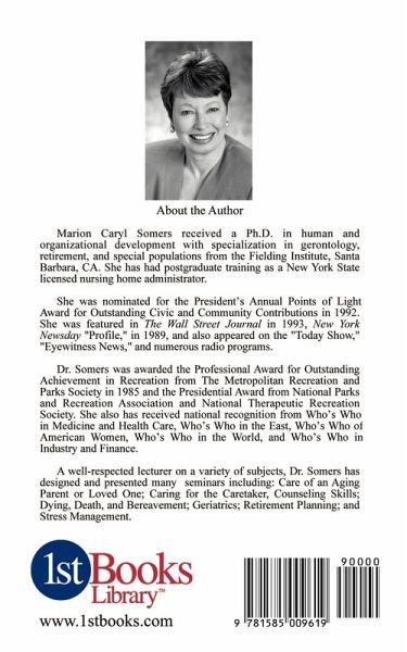 This story details what it's like to live in a nursing home, to deal with the daily frustrations of failing health, and find the courage and resources to meet the demands that each day brings.