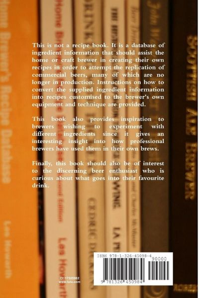 This is not a recipe book. It is a database of ingredient information that should assist the home or craft brewer in creating their own recipes in order to attempt the replication of commercial beers, many of which are no longer in production. Instructions on how to convert the supplied ingredient information into recipes customised to the brewer's own equipment and technique are provided. This book also provides inspiration to brewers wishing to experiment with different ingredients since it gives an interesting insight into how professional brewers have used them in their own brews. This third edition includes data for more beers and breweries including a new category for historical beers. Finally, this book should also be of interest to the discerning beer enthusiast who is curious about what goes into their favourite drink.