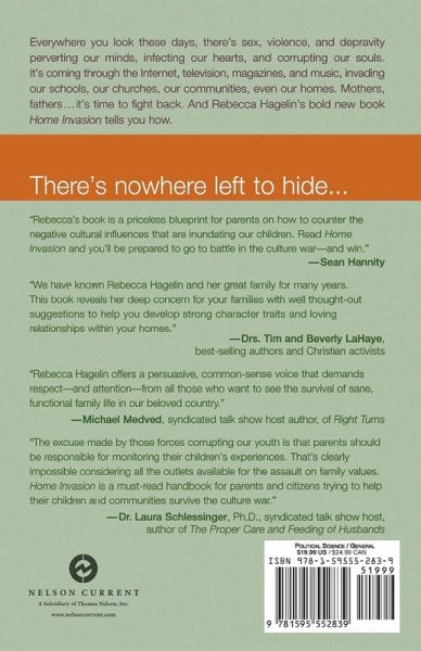 Everywhere you look these days, there's sex, violence, and depravity perverting our minds, infecting our hearts, and corrupting our souls. It's coming through the internet, television, magazines, and music, invading our schools, our churches, our communities, even our homes. Mothers, fathers . . . it's time to fight back. And Rebecca Hagelin's bold new book Home Invasion tells you how. This brave and bracing book is your weapon in the struggle to preserve childhood as a place of innocence for your young children, and to help your teens tower above the culture that seeks to rob them of strong character and their best future. Providing much-needed support and encouragement, Rebecca Hagelin?a columnist, a nationally known social commentator, and most important, a concerned mother of three?shows you how you can triumph over a culture that's gone stark raving mad. Speaking as one parent to another, Hagelin offers practical, powerful solutions for building strong, safe environments for our kids. She inspires and coaches parents on how to stay informed, secure allies in this monumental battle, and most of all, muster the courage and the resolve to lead your family to victory against "cultural terrorism." Written with the conviction of a mother who has had enough of the cultural sludge of indecency and immorality thrust on our vulnerable children, this book takes a bold look at how today's depraved culture has invaded the last safe place?the American family?and what we must do to reclaim the sanctity of the home and the innocence of our children. "Why would we engage in this battle? asks Hagelin. "Because we love our kids. Because our children are depending on us to protect them. Because it's the right thing to do. And because we can win."