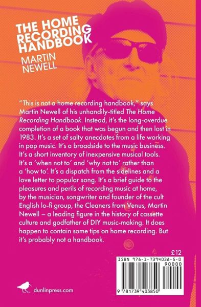 The Home Recording Handbook by Martin Newell is part memoir, part love letter to pop music. It is 170 pages expressing the Godfather of Lo-fi's dedication on music making with an independent spirit. "This is not a home recording handbook," says Martin Newell of his unhandily-titled The Home Recording Handbook. Instead, it's the long-overdue completion of a book that was begun and then lost in 1983. It's a set of salty anecdotes from a life working in pop music. It's a broadside to the music business. It's a short inventory of inexpensive musical tools. It's a 'when not to' and 'why not to' rather than a 'how to'. It's a dispatch from the sidelines and a love letter to popular song. It's a brief guide to the pleasures and perils of recording music at home, by the musician, songwriter and founder of the cult English lo-fi group, the Cleaners from Venus, Martin Newell - a leading figure in the history of cassette culture and godfather of DIY music-making. It does happen to contain some tips on home recording. But it's probably not a handbook.