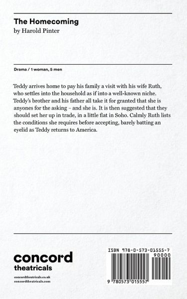 Teddy arrives home to pay his family a visit with his wife Ruth, who settles into the household as if into a well-known niche. Teddy's brothe's and his father all take it for granted that she is anyone's for the asking - and she is. It is then'suggested that they should set her up in trade, in a little flat in Soho. Calmly Ruth lists the conditions she requires before accepting, barely batting an eyelid as Teddy returns to America.