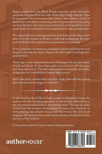 Regal cat that he is, the Black Knight launches on his mission to rescue his daughter from the tribe of the High Ridge wildcats. Here he encounters the deviousness that surfaces when there is a lack of leadership in the feline community, and he is pressured into becoming involved. But how were they to know that their world would be turned upside down by catastophic events engineered by external authorities? The church, like the towering peaks that look down on the town, would seem to be the bastion of all that is solid and unchanging. But how could both the feline and human communities be so wrong? At the same time we witness an emerging romance involving the local hospital: what was for many a disaster, for this couple is unimaginable good fortune. Three sagas evolve independently, each challenged with the great issues of Life and Death. At times their paths cross; but how will they cope and who will survive? The wise and foolish live alongside each other, as they react to circumstances beyond their control. Each must find a solution that suits their needs. How will they pursue their lives beyond the pages of this book?