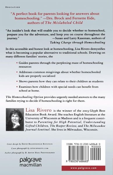 Correcting misconceptions through profiles of diverse families, Rivero uncovers the changing and complex needs of children today. This book addresses the major questions parents are bound to have as they consider the homeschooling option: socialization, curriculum, special needs arrangements, resources, and more.