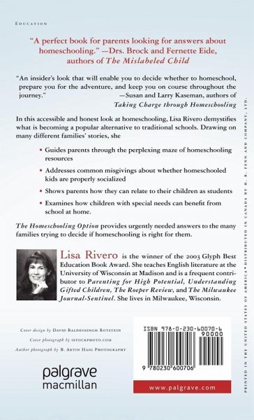 Correcting misconceptions through profiles of diverse families, Rivero uncovers the changing and complex needs of children today. This book addresses the major questions parents are bound to have as they consider the homeschooling option: socialization, curriculum, special needs arrangements, resources, and more.