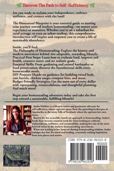 Audra Haldane is an agricultural engineer and bestselling author revolutionizing modern homesteading. For over a decade, she's transformed barren Appalachian hillsides and Scotland's rain-drenched slopes into thriving, climate-resilient ecosystems-proving self-sufficiency is possible anywhere, whether you're on a 10-acre farm or a studio apartment balcony. Audra's actionable books, The Homestead Blueprint, Homesteading Mastery, and The Food Forest Solution, have empowered thousands to slash grocery bills, build drought-proof gardens, and turn "dead" land into income streams. Dubbed the "Marie Kondo of homesteading" by readers, she specializes in cutting through the fluff to deliver no-nonsense strategies for raising backyard chickens, designing permaculture food forests, and harnessing off-grid energy. When she's not teaching urban gardeners how to grow mangoes in Minnesota or coaching suburban moms to preserve 6 months of food, Audra travels the globe studying ancient sustainability practices-then translates them into bite-sized steps for modern life. Join 50,000+ readers who've traded takeout for homegrown salsa, HOA battles for stealth chicken coops, and helplessness for true independence. Follow Audra to start your self-sufficiency journey-no acreage, trust fund, or green thumb required.