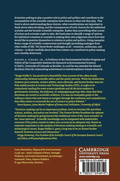 Scientists have a choice concerning what role they should play in political debates and policy formation, particularly in terms of how they present their research. This book is about understanding this choice, what considerations are important to think about when deciding, and the consequences of such choices for the individual scientist and the broader scientific enterprise. Rather than prescribing what course of action each scientist ought to take, the book aims to identify a range of options for individual scientists to consider in making their own judgments about how they would like to position themselves in relation to policy and politics. Using examples from a range of scientific controversies and thought-provoking analogies from other walks of life, The Honest Broker challenges us all - scientists, politicians and citizens - to think carefully about how best science can contribute to policy-making and a healthy democracy.