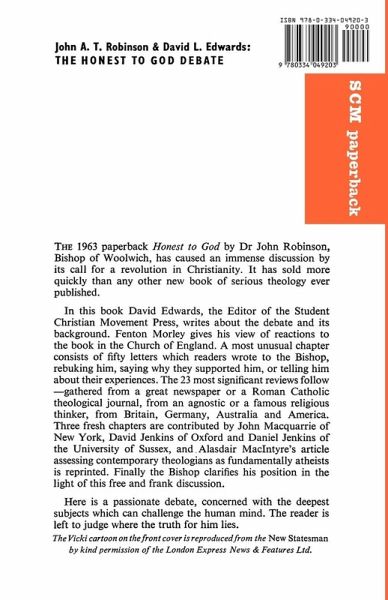 In 1963 'Honest to God' by Dr John Robinson, Bishop of Woolwich, caused an immense discussion by its call for a revolution in Christianity, selling more quickly than any other new book of serious theology ever published. In this book David Edwards writes about the debate and its background.