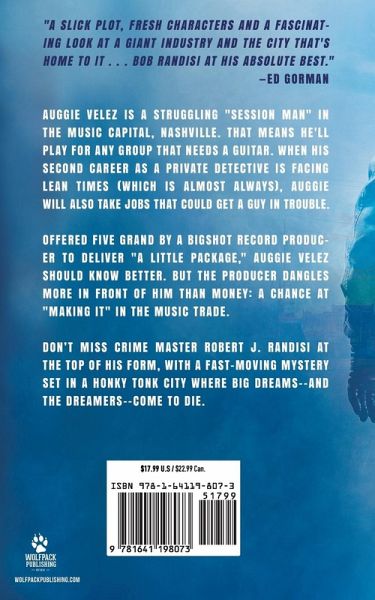 "A slick plot, fresh characters and a fascinating look at a giant industry and the city that's home to it . . . Bob Randisi at his absolute best." - Ed Gorman Auggie Velez is a struggling "session man" in the Music Capital, Nashville. That means he'll play for any group that needs a guitar. When his second career as a private detective is facing lean times (which is almost always), Auggie will also take jobs that could get a guy in trouble. Offered five grand by a bigshot record producer to deliver "a little package," Auggie Velez should know better. But the producer dangles more in front of him than money: a chance at "making it" in the music trade. Don't miss crime master Robert J. Randisi at the top of his form, with a fast-moving mystery set in a honky tonk city where big dreams--and the dreamers--come to die.