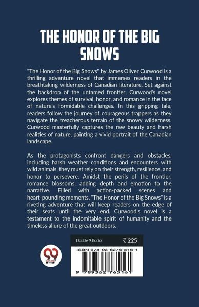 "The Honor of the Big Snows" by James Oliver Curwood is a thrilling adventure novel that immerses readers in the breathtaking wilderness of Canadian literature. Set against the backdrop of the untamed frontier, Curwood's novel explores themes of survival, honor, and romance in the face of nature's formidable challenges. In this gripping tale, readers follow the journey of courageous trappers as they navigate the treacherous terrain of the snowy wilderness. Curwood masterfully captures the raw beauty and harsh realities of nature, painting a vivid portrait of the Canadian landscape. As the protagonists confront dangers and obstacles, including harsh weather conditions and encounters with wild animals, they must rely on their strength, resilience, and honor to persevere. Amidst the perils of the frontier, romance blossoms, adding depth and emotion to the narrative. Filled with action-packed scenes and heart-pounding moments, "The Honor of the Big Snows" is a riveting adventure that will keep readers on the edge of their seats until the very end. Curwood's novel is a testament to the indomitable spirit of humanity and the timeless allure of the great outdoors.