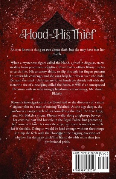Rhosyn knows a thing or two about theft, but she may have met her match. When a mysterious figure called the Hood, a thief in disguise, starts stealing from prominent socialites, Royal Police officer Rhosyn itches to catch him. His uncanny ability to slip through her fingers presents an irresistible challenge, and she can't help but obsess over who hides beneath the mask. Unfortunately, her hands are already full with the meteoric rise of a new gang called the Foxes, as well as an unexpected flirtation with an infuriatingly handsome circus owner, Mr. Ansel Blakely. Rhosyn's investigations of the Hood lead to the discovery of a more sinister plot in a trail of missing Talented. As she digs deeper, she uncovers a tangled web of lies connecting the thief, the new King, and Mr. Blakely's circus. Rhosyn walks along a tightrope between her criminal past and her role in the Royal Police, but protecting her home will force her over the edge, and there is no net to catch her if she falls. Doing so would be hard enough without the strange kinship she feels with the Hood, and the nagging questions of whether her desire to catch him has to do with more than just professional pride.