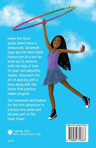 When the third-grade talent show is announced, Savannah Sage and her best friend Hudson are at a loss for what act to perform. With the help of their 16-year-old babysitter, Jazmin, they learn the art of dancing with a hoop along with the lesson that practice makes progress. Join Savannah and Hudson for this first adventure in this engaging series and become part of The Hoop Troop! This inspiring and joyful book marks the launch of a new favorite chapter book series! Discussion guide included. A ROYAL DRAGONFLY AWARD WINNER: CHILDREN'S CHAPTER BOOK, MIDDLE GRADE FICTION 2022
