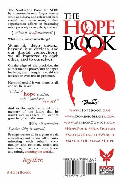 The Hope Book: What if Hope Existed, Only I Could Not See It? The NonFiction Prose for NOW, by a cartoonist who forgot how to write and draw, and relearned from scratch, with what were, in fact, superhuman efforts in becoming more present, aware, alert, and real. (What if it all mattered?) What if it all meant something?! What if, deep down... beyond our devices and our digital connections, we all mattered to each other, and to ourselves? On the edge of the precipice, the author made a prayer, and he hoped for hope, even though he could not observe or even feel its presence. He wondered if it was there, at all, and so, he asked... "What if hope existed, only I could not see it?" And so, the author survived on a memory of the future that he wasn't sure was there, but went to great lengths to discover. We're all connected. Synchronicity is normal. Perhaps we are all in a giant clock, after all, a giant mirror ball of sorts, mirroring each other's every thought and emotion, action and intention, in our own very hearts and minds, creating the world... together. #HopeBook