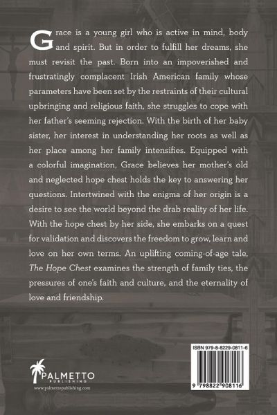 Grace is a young girl who is active in mind, body and spirit. But in order to fulfill her dreams, she must revisit the past. Born into an impoverished and frustratingly complacent Irish American family whose parameters have been set by the restraints of their cultural upbringing and religious faith, she struggles to cope with her father's seeming rejection. With the birth of her baby sister, her interest in understanding her roots as well as her place among her family intensifies. Equipped with a colorful imagination, Grace believes her mother's old and neglected hope chest holds the key to answering her questions. Intertwined with the enigma of her origin is a desire to see the world beyond the drab reality of her life. With the hope chest by her side, she embarks on a quest for validation and discovers the freedom to grow, learn and love on her own terms. An uplifting coming-of-age tale, The Hope Chest examines the strength of family ties, the pressures of one's faith and culture, and the eternality of love and friendship.