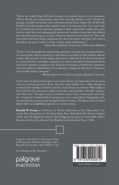 "Evans's latest book, like his earlier works, provides a meticulously researched history of social studies reform written in a style that is accessible to both scholars and lay readers. His narrative of the origins and reforms called for in the 'new social studies,' along with the concluding comparison to today's attempted educational reform movement, provides a cautionary tale about the motivations of politicians, reformers, and other political stakeholders as they attempt to change the direction of America's social studies/history program." - Barbara Slater Stern, professor, College of Education, James Madison University