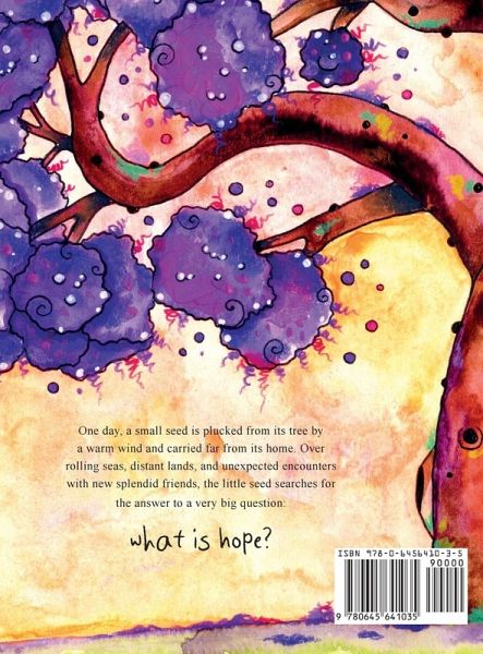 cOne day, a small seed is plucked from its tree by a warm wind and carried far from its home. Over rolling seas, distant lands, and unexpected encounters with new splendid friends, the little seed searches for the answer to a very big question: What is hope? Created by a doctor, this book is designed to help children learn to read whilst exploring big life concepts. It follows on from her successful debut children's book 'The Day the Sky Went Away, which has been widely recommended by paediatricians, parents, psychologists, counsellors, early educators, teachers and librarians. This book includes art activities to enable creative discussion and imagination. Visit the website for lesson plans for schools. Readers Favourite 5 star review: Philip Van Heusen Dr. Ellen Paton helps children understand the concept of hope through her book The Hope Seed. While reading this book, your child will be introduced to several different animals and aspects of hope. The illustrations by Shayna Renee Olivier will help to keep your child's interest. It also provides an opportunity to spend time discussing hope with your child and what it means to them. Help them understand that hope may change over time, and their understanding will grow and change as they become older. Having spent over forty years in my counseling office, I know that hope is the one ingredient everyone needs to survive. Give your child the gift of hope!