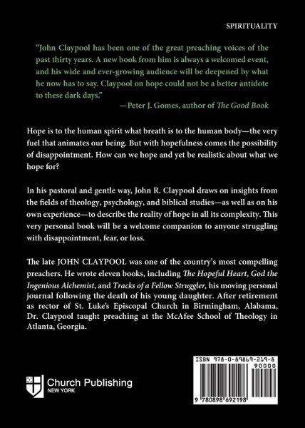 Hope is to the human spirit what breath is to the physical body-the very fuel that animates our being. So says best-selling author John Claypool. But with hopefulness comes the possibility of disappointment. How can we hope and yet be realistic about what we hope for? What is a hope that doesn't disappoint?