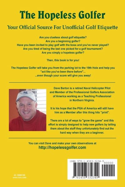Your official source for unofficial golf etiquette. Are you clueless about golf etiquette? Are you a beginning golfer? Have you been invited to play golf with the boss and you've never played? Are you tired of being the last one picked for a golf tournament? Are you simply a hopeless golfer? This book is for you! The Hopeless Golfer will take you from the parking lot to the 19th Hole and help you act "like you've been there before" ... even though your score will give you away...