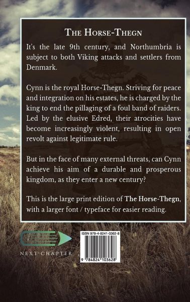 It's the late 9th century, and Northumbria is subject to both Viking attacks and settlers from Denmark. Cynn is the royal Horse-Thegn. Striving for peace and integration on his estates, he is charged by the king to end the pillaging of a foul band of raiders. Led by the elusive Edred, their atrocities have become increasingly violent, resulting in open revolt against legitimate rule. But in the face of many external threats, can Cynn achieve his aim of a durable and prosperous kingdom, as they enter a new century? This is the large print edition of The Horse-Thegn, with a larger font / typeface for easier reading.