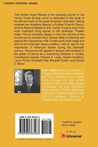 The Horton Foote Review is the scholarly journal of the Horton Foote Society, which is dedicated to the study of the life and work of the great American dramatist. Having received two Academy Awards, a Pulitzer Prize for Drama, and the National Medal of Arts, Horton Foote is one of the most important living figures in the American Theater today. The six scholarly essays in this first volume of the journal are by scholars from diverse fields of learning and explore the importance of Mr. Foote's work (both stage and film) to the American literary tradition, with an eye for the importance of American drama during the twentieth century. The journal will appeal to anyone who believes in the power of drama as a sustaining influence in society. Contributors include: Richard A. Lusky, Robert Donahoo, Laurin Porter, Elizabeth Fifer, Meredith Sutton, and Gerald C. Wood.