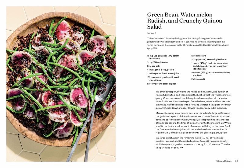 Chapter 3: Sides and Salads Shoestring Fries Tower and Roasted Garlic Aioli Minty Pea Soup with Crème Fraîche Swirl 5 Ways with a Good Loaf of Bread Vegetarian Summer Rolls with Peanut Sauce Salmon-Avocado Temaki Hand Rolls Crispy Scallion Pancakes and Dipping Sauce Trio Menu: Backyard Luau Tie-Dye Rainbow Dumplings Smoky Shrimp Tostadas Ejjeh-esque Frittata and Labne Sauce Cherry Tomato and Arugula Pesto Galette Menu: Vegetarian Feast Panelle Chickpea Fritters Garlic Knot Waffles Toothpick Gnocchi with Oregano Breadcrumbs Saffron Couscous with Cauliflower, Chickpeas, and Pomegranate Extraordinary Green Leafy Salad Secrets to the Best Salads Watermelon Radish and Avocado Salad Green Bean, Watermelon Radish, and Crunchy Quinoa Salad Cara Cara, Hazelnut, and Ruby Chicories Salad Salt-and-Vinegar Cauliflower and Brussels Blistered Padrón Peppers on Avocado Crema Rose-Chile King Trumpet Mushrooms and Sautéed Greens Menu: Friends and Family Sunday Supper