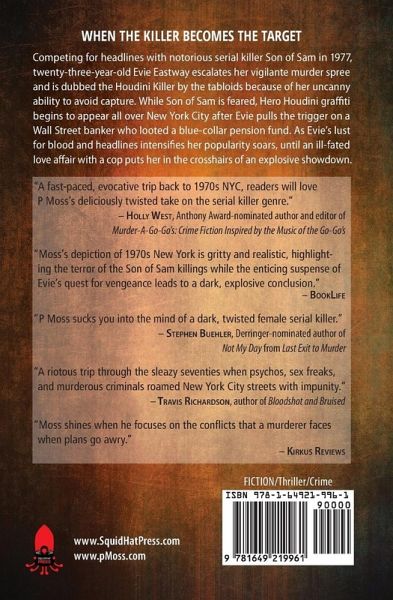 WHEN THE KILLER BECOMES THE TARGET Competing for headlines with notorious serial killer Son of Sam in 1977, twenty-three-year-old Evie Eastway escalates her vigilante murder spree and is dubbed the Houdini Killer by the tabloids because of her uncanny ability to avoid capture. While Son of Sam is feared, Hero Houdini graffiti begins to appear all over New York City after Evie pulls the trigger on a Wall Street banker who looted a blue-collar pension fund. As Evie's lust for blood and headlines intensifies she falls in love with the police lieutenant in command of the task force assigned to capture her, but keeping him from discovering her secret proves difficult and it is not long before she finds herself in the crosshairs of an explosive showdown.