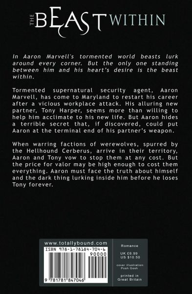 In Aaron Marvell's tormented world beasts lurk around every corner. But the only one standing between him and his heart's desire is the beast within. Tormented supernatural security agent, Aaron Marvell, has come to Maryland to restart his career after a vicious workplace attack. His alluring new partner, Tony Harper, seems more than willing to help him acclimate to his new life. But Aaron hides a terrible secret that, if discovered, could put Aaron at the terminal end of his partner's weapon. When warring factions of werewolves, spurred by the Hellhound Cerberus, arrive in their territory, Aaron and Tony vow to stop them at any cost. But the price for valor may be high enough to cost them everything. Aaron must face the truth about himself and and the dark thing lurking inside him before he loses Tony forever.