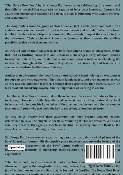 "The House Boat Boys" by St. George Rathborne is an exhilarating adventure novel that follows the thrilling escapades of a group of boys on a houseboat journey. Set against the picturesque backdrop of a river, this tale is brimming with action, mystery, and camaraderie. The story centers around a group of close friends ¿ Jack, Frank, Andy, and Will ¿ who embark on a summer vacation filled with excitement and wonder. When the boys' families decide to take a trip on a houseboat, they eagerly jump at the chance to join the adventure. Their excitement knows no bounds as they imagine the endless possibilities that await them on the river. As they set sail on their houseboat, the boys encounter a series of unexpected events that lead to thrilling encounters and unforeseen challenges. They navigate through treacherous waters, explore mysterious islands, and uncover hidden secrets along the riverbanks. Throughout their journey, they rely on their ingenuity and teamwork to overcome the obstacles that come their way. Amidst their adventures, the boys form an unbreakable bond, relying on one another for support and encouragement. They share laughter, joy, and even moments of fear, as they face the unknown together. Through their experiences, they learn valuable life lessons about friendship, loyalty, and the importance of working as a team. The House Boat Boys' journey takes them to new places and introduces them to intriguing characters, both friendly and not-so-friendly. They befriend a local fisherman who imparts his knowledge of the river and its history, and they encounter mysterious figures who may hold the key to unlocking a long-lost treasure. As they delve deeper into their adventure, the boys become amateur sleuths, determined to solve the enigmatic puzzle surrounding the hidden treasure. With each clue they uncover, they grow closer to unraveling the mystery, and the thrill of the chase keeps readers on the edge of their seats. St. George Rathborne weaves a captivating narrative that paints a vivid picture of the boys' houseboat journey. His descriptive prose immerses readers in the beauty of the river and the excitement of the boys' daring exploits. The story is filled with heartwarming moments of friendship, thrilling action sequences, and the allure of exploration. "The House Boat Boys" is a classic tale of adventure, camaraderie, and the spirit of discovery. It ignites the imaginations of young readers, inspiring them to embrace the joy of exploration and the wonders that lie beyond the familiar. The House Boat Boys' journey serves as a reminder that the world is full of surprises, and that true adventure can be found right outside our own front door."