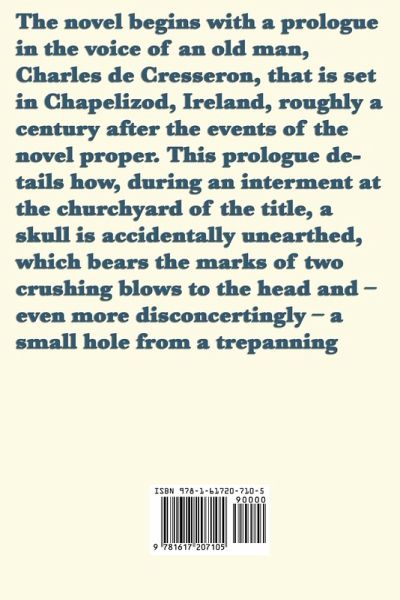 The novel begins with a prologue in the voice of an old man, Charles de Cresseron, that is set in Chapelizod, Ireland, roughly a century after the events of the novel proper. This prologue details how, during an interment at the churchyard of the title, a skull is accidentally unearthed, which bears the marks of two crushing blows to the head and - even more disconcertingly - a small hole from a trepanning