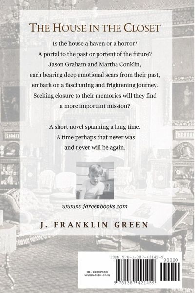 Is the house a haven or a horror? A portal to the past or portent of the future? Jason Graham and Martha Conklin, each bearing deep emotional scars from their past, embark on a fascinating and frightening journey. Seeking closure to their memories, will they find a more important mission to pursue? This is short novel spanning a very long time. A time perhaps that never was and never will be again. Set in slightly larger than normal type, to be easily read with tired eyes, in dim light or hiding in dark alleys.