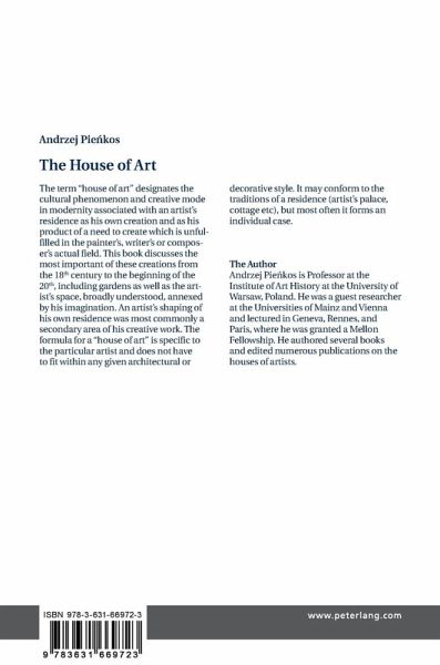 The term «house of art» designates the cultural phenomenon and creative mode in modernity associated with an artist's residence as his own creation and as his product of a need to create which is unfulfilled in the painter's, writer's or composer's actual field. This book discusses the most important of these creations from the 18th century to the beginning of the 20th, including gardens as well as the artist's space, broadly understood, annexed by his imagination. An artist's shaping of his own residence was most commonly a secondary area of his creative work. The formula for a «house of art» is specific to the particular artist and does not have to fit within any given architectural or decorative style. It may conform to the traditions of a residence (artist's palace, cottage etc), but most often it forms an individual case.