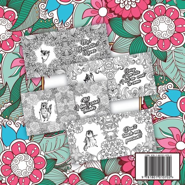 Dive into a uniquely hilarious coloring book and celebrate the world of cats! With a memorable collection of comical cat-themed illustrations, this unique and amusing coloring book makes the perfect way to relax, destress, and celebrate the world of cats. As a fun and snarky gift for coloring fans of all ages, inside you'll find an exquisite array of gorgeous floral designs, humorous quotes, and plenty of stuck-up cats which perfectly embody the attitude they have for the world. The You Piss Me Off Coloring Book is an ideal way to let go of the day's stress with a laugh, providing you with hours of fun as you experiment with your creativity and unleash your imagination. Book details:Features Dozens of Professional-Quality Illustrations Guaranteed To Tickle Your Funny Bone Great For All Ages and Skill Levels Large Paper Suitable For All Kinds of Pens, Pencils and Crayons Promotes Mindfulness, Creativity, and Relaxation And Makes a Brilliant Gift Idea For Birthdays, Christmas, Holidays and More If you're looking for a one-of-a-kind coloring book which you won't soon forget, then this is for you! With elegant floral borders, snobby cats, and a collection of quotes certain to give you a chuckle, the You Piss Me Off Coloring Book is a sure-fire way to relax, unwind, or add some humor to a friend or loved one's life.