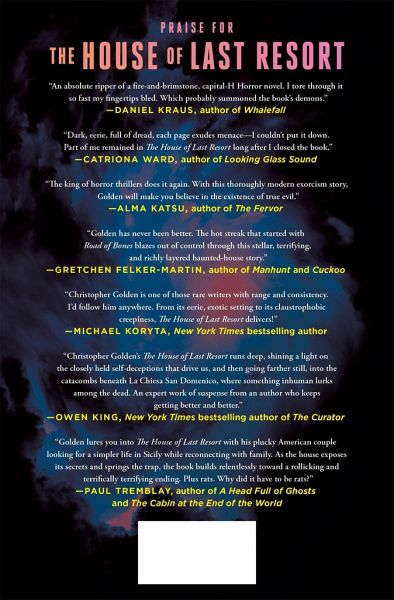 The next high concept horror novel from New York Times bestselling author Christopher Golden. Across Italy there are many half-empty towns, nearly abandoned by those who migrate to the coast or to cities. The beautiful, crumbling hilltop town of Becchina is among them, but its mayor has taken drastic measures to rebuild-selling abandoned homes to anyone in the world for a single Euro, as long as the buyer promises to live there for at least five years. It's a no-brainer for American couple Tommy and Kate Puglisi. Both work remotely, and Becchina is the home of Tommy's grandparents, his closest living relatives. It feels like a romantic adventure, an opportunity the young couple would be crazy not to seize. But from the moment they move in, they both feel a shadow has fallen on them. Tommy's grandmother is furious, even a little frightened, when she realizes which house they've bought. There are rooms in an annex at the back of the house that they didn't know were there. The place makes strange noises at night, locked doors are suddenly open, and when they go to a family gathering, they're certain people are whispering about them, and about their house, which one neighbor refers to as The House of Last Resort. Soon, they learn that the home was owned for generations by the Church, but the real secret, and the true dread, is unlocked when they finally learn what the priests were doing in this house for all those long years...and how many people died in the strange chapel inside. While down in the catacombs beneath Becchina...something stirs.