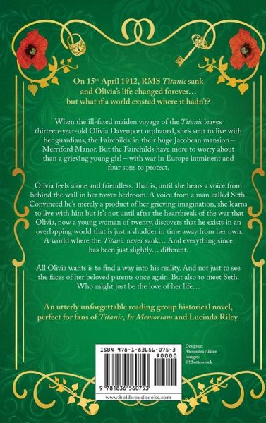 On 15th April 1912, RMS Titanic sank and 1500 people lost their lives. But what if it had stayed afloat? When the ill-fated maiden voyage of the Titanic leaves thirteen-year-old Olivia Davenport orphaned, she's sent to live with her guardians, the Fairchilds, in their huge Jacobean mansion - Merriford Manor. But the Fairchilds have more to worry about than a grieving young girl - with war in Europe imminent and four sons to protect. Olivia feels alone and friendless. That is, until she hears a voice from behind the wall in her tower bedroom. A voice from a man called Seth. At first she thinks he's a ghost. But it soon becomes clear that he lives in an overlapping world that is just a shudder in time away from her own. A world where the Titanic never sank... And everything since has been just slightly... different. All Olivia wants is to find a way into his reality. And not just to see the faces of her beloved parents once again. But also to meet Seth. Who might just be the love of her life... An utterly unforgettable reading group historical novel, that is part romance, part gripping mystery, and part completely heartbreaking First World War historical fiction. Perfect for fans of Titanic, In Memoriam and Lucinda Riley. Readers love Jenni Keer: 'To sum this book up in one word... Absobloodymazing!!!... I am in love with the way [the author] writes historical fiction, timeslips, mysteries and romance all in one book. She really is clever, the way she hides her clues throughout the book and gives her readers so many 'aha' moments throughout. The sheer amount of twists leaves you feeling seasick in the best possible way.' ⭐⭐⭐⭐⭐ Reader Review 'A fantastic read!... The puzzle, once solved, is staggering... I'd recommend this to anyone who loves historical fiction with a mystery and a dash of the unexplainable thrown in. Brilliant imagination!!!' ⭐⭐⭐⭐⭐ Reader Review 'Wow! I loved this! It's such a clever book, beautifully written with such wonderful detail and amazing characters**. I give this a very rare 10 out of 10 and will be adding Jenni Keer to my list of authors I must read everything they ever write. Superb!**' ⭐⭐⭐⭐⭐ Reader Review 'Wow!!... It's like no other book that I have read, it's unique and clever and I enjoyed every single page!' ⭐⭐⭐⭐⭐ Reader Review 'Creative, unusual and brilliant! This book is nothing like anything else I've read and I loved it!... Wonderful!' ⭐⭐⭐⭐⭐ Reader Review 'I was hooked from the first page... It seemed to get into my head and when I wasn't reading it, I was thinking about it. Highly recommend.' ⭐⭐⭐⭐⭐ Reader Review '**I cannot tell you have much I loved this book. **I was totally captivated... I devoured it in a day.' ⭐⭐⭐⭐⭐ Reader Review 'I couldn't let this one go... These characters are all so superbly drawn. They feel real, like they might jump out of the pages of the book and wrap their arms around you... Quite simply, had me enthralled.' ⭐⭐⭐⭐⭐ Reader Review