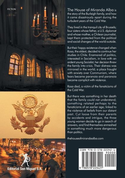 The House of Miranda Alba is the story of the Burleigh family, and how it came disastrously apart during the turbulent years of the Cold War. They lived in the tranquil city of Brussels; four sisters whose father, a U.S. diplomat and whose mother, a Chilean journalist, kept them protected from the political and social changes of the world outside. But their happy existence changed when Rosa, the eldest, decided to continue her studies in Chile. Enamored of politics, interested in Socialism, in love with an ardent young Socialist, her decision threw the family into crisis. Their distress was mirrored in the world; a place fraught with anxiety over Communism, where fears became paranoia and paranoia became complicit with violence. Rosa died, a victim of the fanaticisms of the Cold War. But there was something in her death that the family could not understand; something related perhaps to the fanaticisms of an earlier age; linked to the violence of beliefs from our distant past.