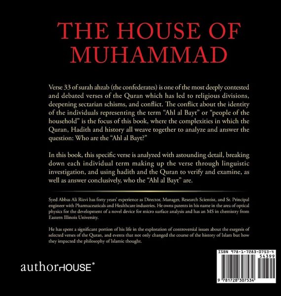 Verse 33 of surah ahzab (the confederates) is one of the most deeply contested and debated verses of the Quran which has led to religious divisions, deepening sectarian schisms, and conflict. The conflict about the identity of the individuals representing the term "Ahl al Bayt" or "people of the household" is the focus of this book, where the complexities in which the Quran, Hadith and history all weave together to analyze and answer the question: Who are the "Ahl al Bayt?" In this book, this specific verse is analyzed with astounding detail, breaking down each individual term making up the verse through linguistic investigation, and using hadith and the Quran to verify and examine, as well as answer conclusively, who the "Ahl al Bayt" are.