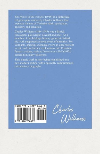 'The House of the Octopus' (1945) is a fantastical religious play written by Charles Williams that explores themes of Christian faith, spirituality, apostasy, and salvation. Charles Williams (1886-1945) was a British theologian, playwright, novelist and poet. As a member of the 'Inklings' literary group at Oxford, his work supported a strong sense of narrative. Williams acknowledged the spiritual undercurrents present in life and his literary explorations into Christian fantasy writing, such as 'Descent into Hell' (1937), earned him many followers. This classic work is now being republished in a new modern edition with a specially commissioned introductory biography.