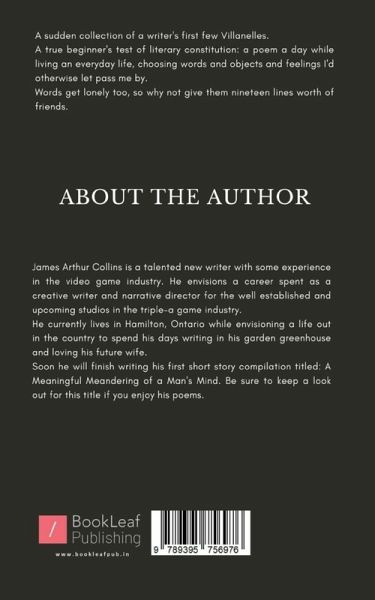 ""A sudden collection of a writer's first few Villanelles. A true beginner's test of literary constitution: a poem a day while living an everyday life, choosing words and objects and feelings I'd otherwise let pass me by. Words get lonely too, so why not give them nineteen lines worth of friends.""