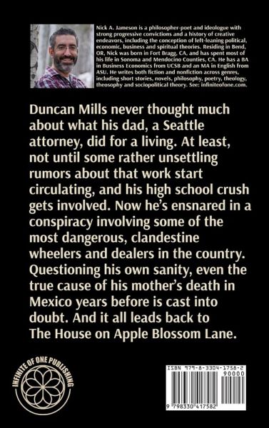 Duncan Mills never thought much about what his dad, a Seattle attorney, did for a living. At least, not until some rather unsettling rumors about that work start circulating, and his high school crush gets involved. Now he's ensnared in a conspiracy involving some of the most dangerous, clandestine wheelers and dealers in the country. Questioning his own sanity, even the true cause of his mother's death in Mexico years before is cast into doubt. And it all leads back to The House on Apple Blossom Lane.