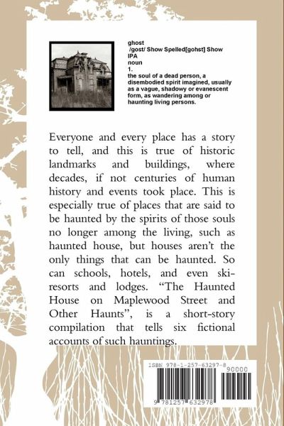 Every place has its unique story behind it,a place that has, through years,decades,even centuries of human inhabitance,developed a character all its own,through the many human events and experiences that went on there.This is especially true of so-called haunted house and buildings,in which the spirits of since-deceased people haunted said establishment,either because of unfinished business, or because said spirit has unfinished business to attend to.This is especially true of the places in the six, fictionalized short-stories in "The House on Maplewood Street and Other Haunts",whether it's a house, like the one in the title,and first story, or a hotel ("The Crestmoore"), a middle-school ("Left Behind in Middle School"),or even a ski-resort ("The Snowcat Lodge"),or even an entire town ("Town of the Dead"),as ghosts aren't limited to haunting edifices.