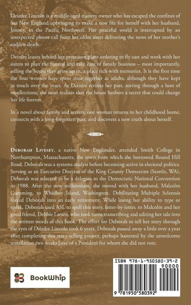 Deborah Livesey, a native New Englander, attended Smith College in Northampton, Massachusetts, the town from which she borrowed Round Hill Road. Deborah was a systems analyst before becoming active in electoral politics. Serving as an Executive Director of the King County Democrats (Seattle, WA), Deborah was selected to be a delegate to the Democratic National Convention in 1988. After the new millennium, she moved with her husband, Malcolm Cumming, to Whidbey Island, Washington. Debilitating Multiple Sclerosis forced Deborah into an early retirement. While losing her ability to type or speak, Deborah used ASL to spell this story, letter-by-letter, to Malcolm and her good friend, Debbie Larsen, who took turns transcribing and editing her tale into the written words of this book. The effort for Deborah to tell her story through the eyes of Deirdre Lincoln took 6 years. Deborah passed away a little over a year after completing this story-telling project, perhaps hastened by the unwelcome installation two weeks later of a President for whom she did not vote.