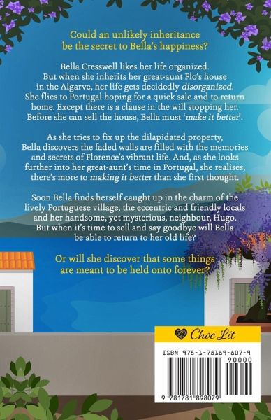 Bella inherits her great-aunt Flo's house in the Algarve. She flies to Portugal hoping for a quick sale and to return home. Soon Bella finds herself caught up in the charm of the lively Portuguese village and her handsome neighbour, Hugo.
