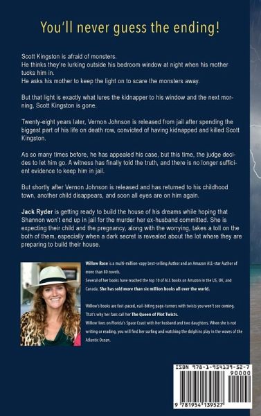 From the Amazon ALL-star Bestselling author Willow Rose Scott Kingston is afraid of monsters. He thinks they're lurking outside his bedroom window at night when his mother tucks him in. He asks his mother to keep the light on to scare the monsters away. But that light is exactly what lures the kidnapper to his window and the next morning, Scott Kingston is gone. Twenty-eight years later, Vernon Johnson is released from jail after spending the biggest part of his life on death row, convicted of having kidnapped and killed Scott Kingston. As so many times before, he has appealed his case, but this time, the judge decides to let him go. A witness has finally told the truth, and there is no longer sufficient evidence to keep him in jail. But shortly after Vernon Johnson is released and has returned to his childhood town, another child disappears, and soon all eyes are on him again. Jack Ryder is getting ready to build the house of his dreams while hoping that Shannon won't end up in jail for the murder her ex-husband committed. She is expecting their child and the pregnancy, along with the worrying, takes a toll on the both of them, especially when a dark secret is revealed about the lot where they are preparing to build their house.
