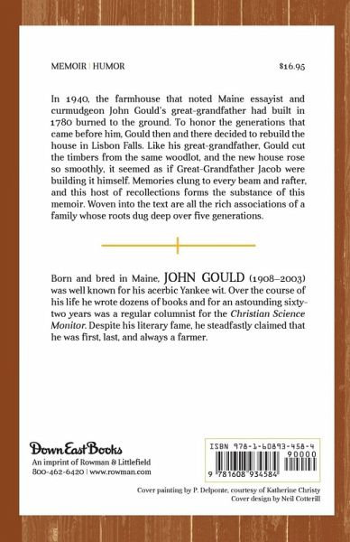 In 1940, the 1780-farmhouse that noted Maine essayist and curmudgeon John Gould’s great-grandfather built burned to the ground. To honor the generations that came before him, Gould there and then decided to rebuild the house in Lisbon Falls. Memories clung to every beam and rafter and these recollections form the substance of Gould's memoir.