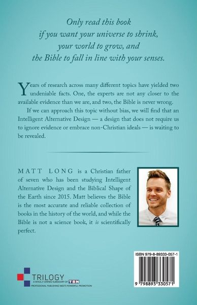 Only read this book if you want your universe to shrink, your world to grow, and the Bible to fall in line with your senses. Years of research across many different topics have yielded two undeniable facts. One, the experts are not any closer to the available evidence than we are, and two, the Bible is never wrong. If we can approach this topic without bias, we will find that an Intelligent Alternative Design - a design that does not require us to ignore evidence or embrace non-Christian ideals - is waiting to be revealed.
