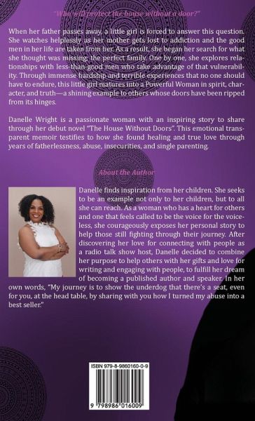 "Who will protect the house without a door?" When her father passes away, a little girl is forced to answer this question. She watches helplessly as her mother gets lost to addiction and the good men in her life are taken from her. As a result, she began her search for what she thought was missing; the perfect family. One by one, she explores abusive relationships with less-than-good men who take advantage of that vulnerability. Through immense hardship and terrible experiences that no one should have to endure, this little girl matures into a Powerful Woman in spirit, character, and truth-a shining example to others whose doors have been ripped from its hinges.