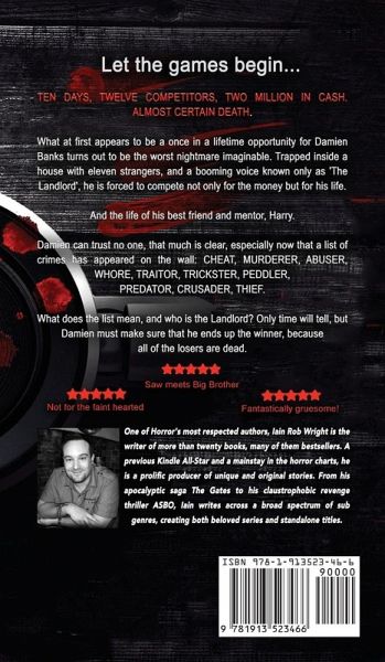 TEN DAYS, TWELVE COMPETITORS, TWO MILLION IN CASH. ALMOST CERTAIN DEATH. What at first appears to be a once in a lifetime opportunity for Damien Banks turns out to be the worst nightmare imaginable. Trapped inside a house with eleven strangers, and a booming voice known only as 'The Landlord', he is forced to compete not only for the money but for his life. And the life of his best friend and mentor, Harry. Damien can trust no one, that much is clear, especially now that a list of crimes has appeared on the wall: CHEAT, MURDERER, ABUSER, WHORE, TRAITOR, TRICKSTER, PEDDLER, PREDATOR, CRUSADER,…mehr