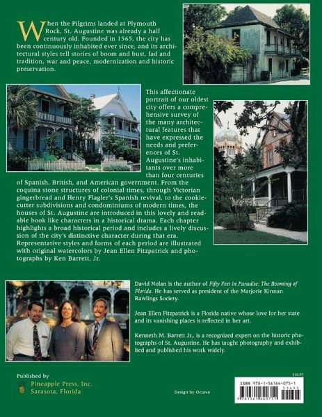 When the Pilgrims landed at Plymouth Rock, St. Augustine was already half a century old. Founded in 1565, the city has been continuously inhabited ever since, and its architectural styles tell stories of boom and bust, fad and tradition, war and peace, modernization and historic preservation. This affectionate portrait of our oldest city offers a comprehensive survey of the many architectural features that have expressed the needs and preferences of St. Augustine's inhabitants over more than four centuries of Spanish, British, and American government. From the coquina stone structures of colonial times, through Victorian gingerbread and Henry Flagler's Spanish revival, to the cookie-cutter subdivisions and condominiums of modern times, the houses of St. Augustine are introduced in this lovely and readable book like characters in a historical drama. Each chapter highlights a broad historical period and includes a lively discussion of the city's distinctive character during that era. Representative styles and forms of each period are illustrated with color photographs and original watercolors by Jean Ellen Fitzpatrick.