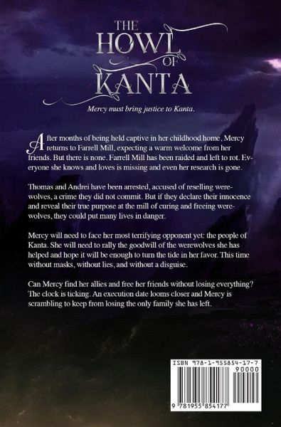 Mercy must bring justice to Kanta. After months of being held captive in her childhood home, Mercy returns to Farrell Mill, expecting a warm welcome from her friends. But there is none. Farrell Mill has been raided and left to rot. Everyone she knows and loves is missing and even her research is gone. Thomas and Andrei have been arrested, accused of reselling werewolves, a crime they did not commit. But if they declare their innocence and reveal their true purpose at the mill of curing and freeing werewolves, they could put many lives in danger. Mercy will need to face her most terrifying opponent yet: the people of Kanta. She will need to rally the goodwill of the werewolves she has helped and hope it will be enough to turn the tide in her favor. This time without masks, without lies, and without a disguise. Can Mercy find her allies and free her friends without losing everything? The clock is ticking. An execution date looms closer and Mercy is scrambling to keep from losing the only family she has left.